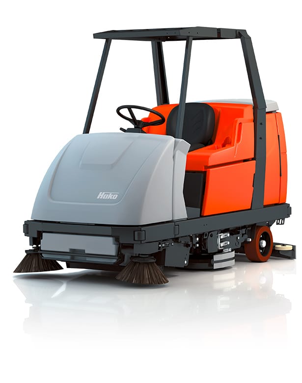Von kompakt und wendig bis zum Universal-Modell für eine Flächenleistung von 16.200 m² pro Stunde reicht unsere Produktpalette der Ride-on-Kehrsaugmaschinen von Hako. Leistungsstarke Staubfiltersysteme sorgen für einen Abscheidegrad von 99,5 %, die optimierte Absaugung sichert eine hohe Bindung von Staub und Schmutzpartikeln.
